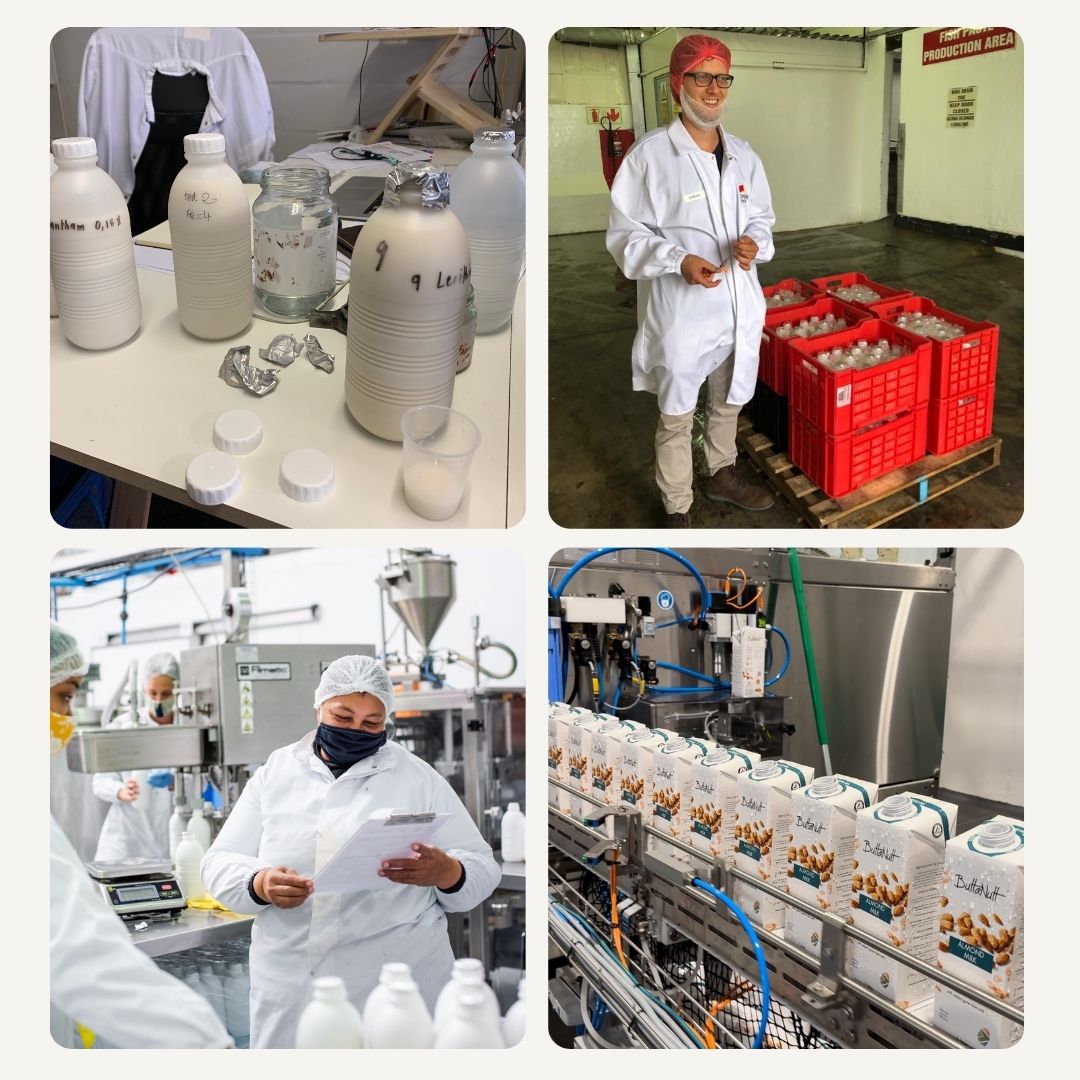 In 2015 the ButtaNutt team had started home-type experimental trials on nut milks – hours of squeezing cheese cloth, only to watch the curdles appear in their coffee. Antoine travelled to the US in 2016 to check out the scene and became hooked on the idea of producing commercially viable milks locally. This dream eventually became a reality in 2021 when ButtaNutt launched 3 milk alternatives. The reception was overwhelmingly positive and soon milk production far overshadowed the nut butters.